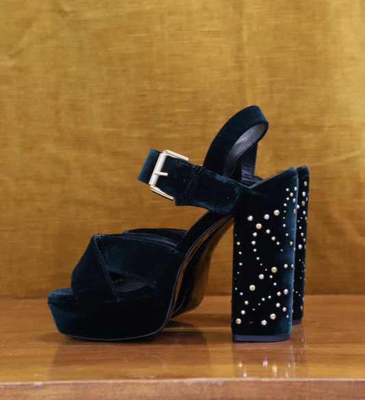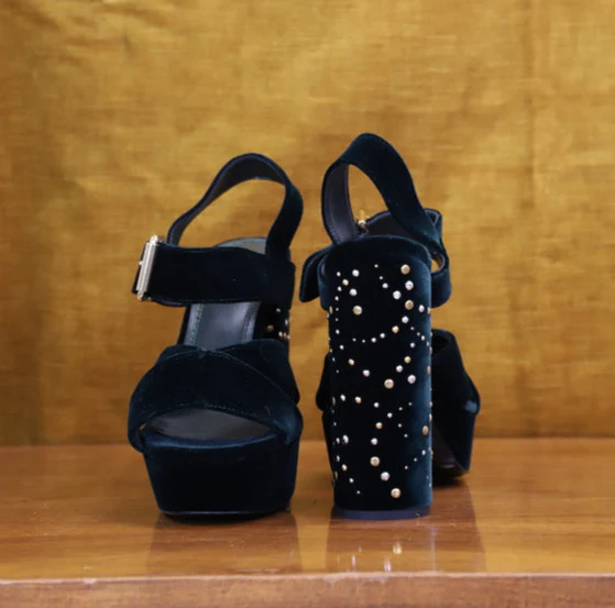 | DESCRIPTIF | Sandales à plateformes, talons cloutés de 15 cm |