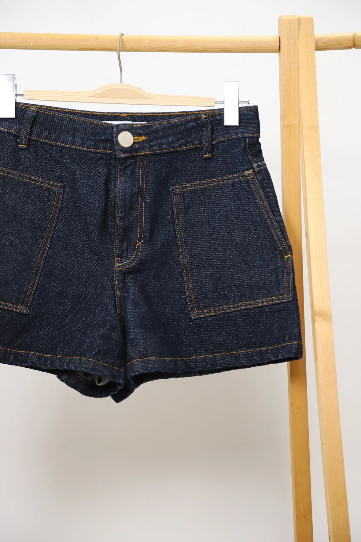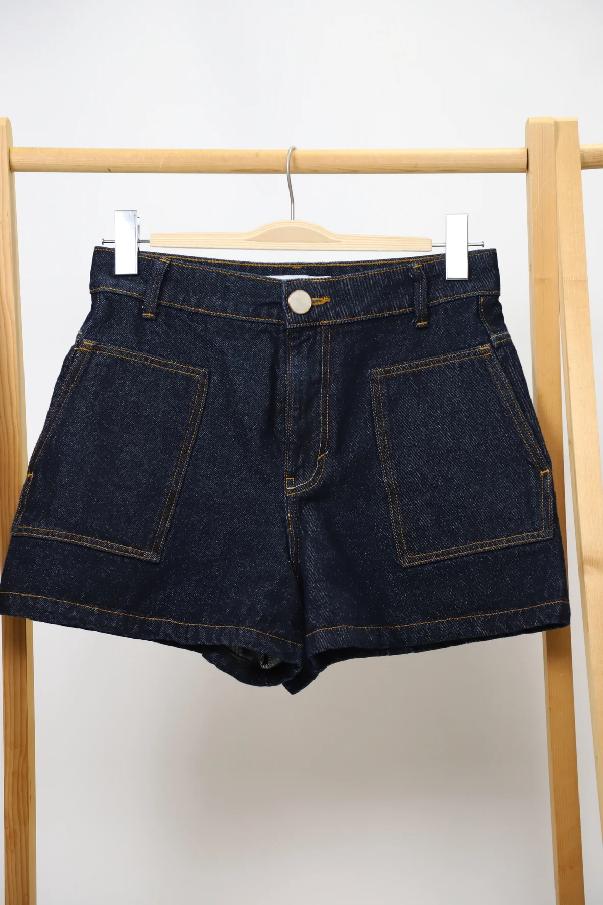 Short bleu brut ZARA, avec 2 fausses poches à l’arrière, bouton nacré, Taille M/38
