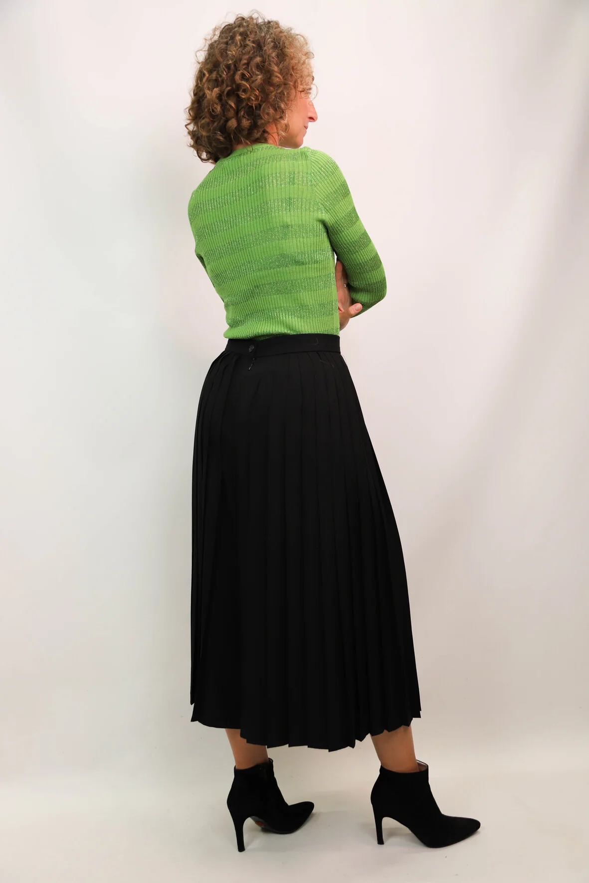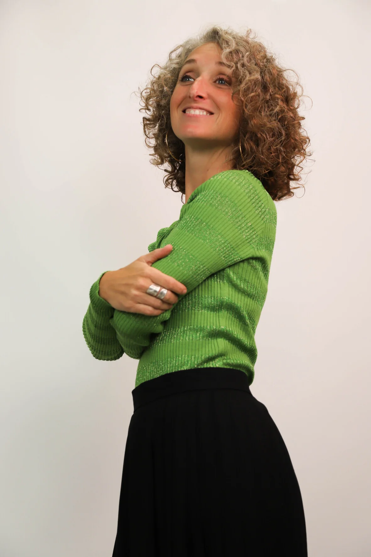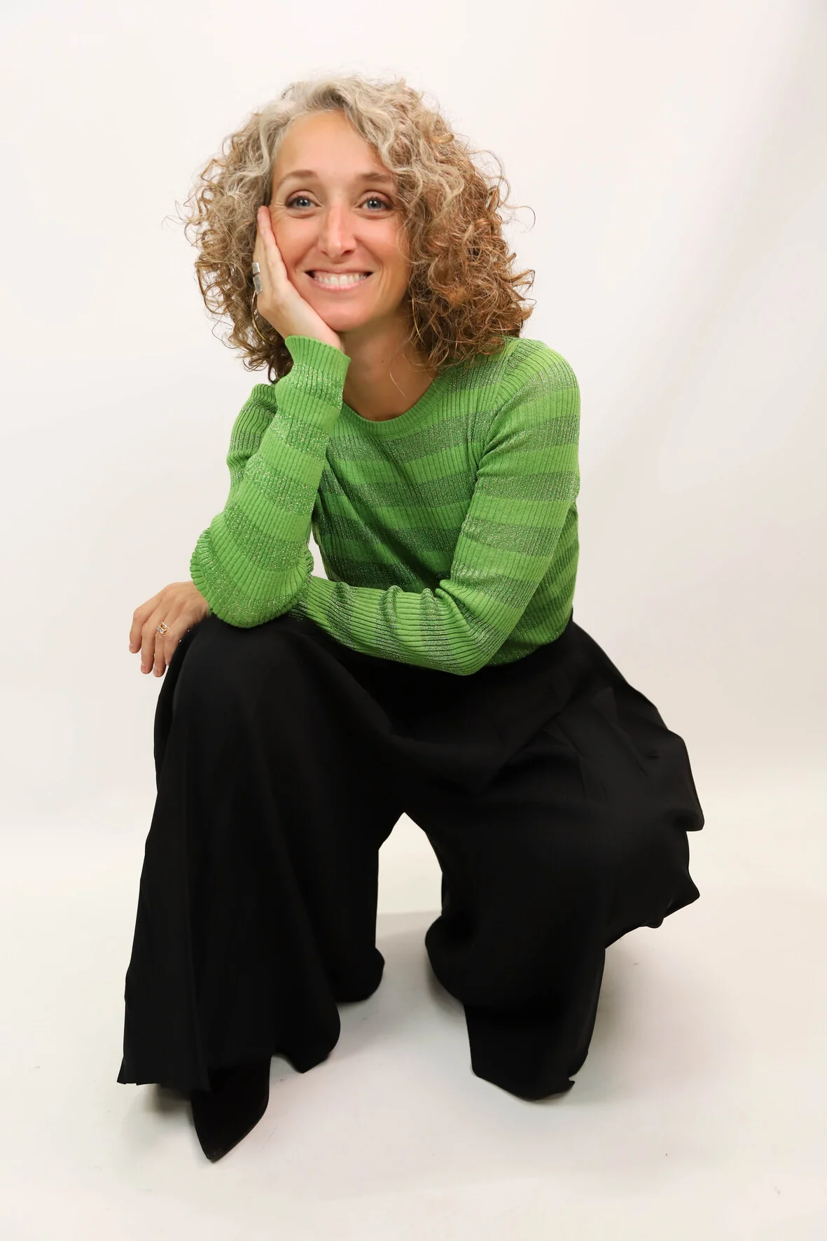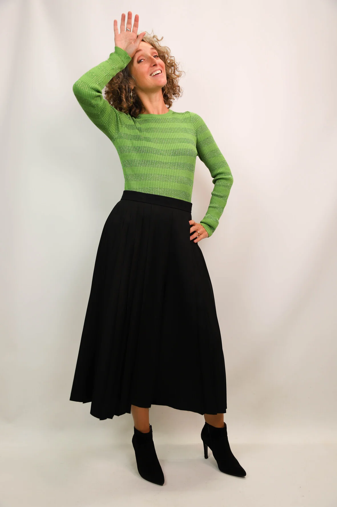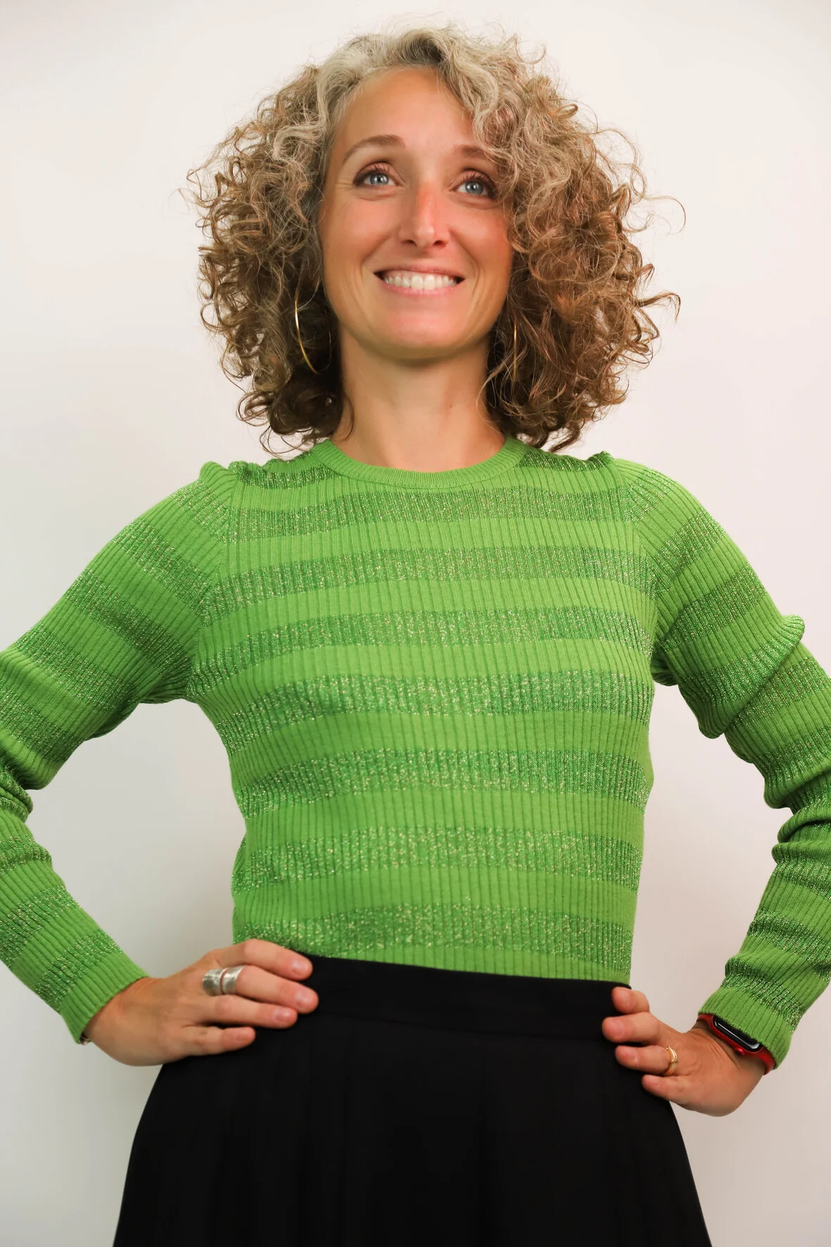 DESCRIPTIF Tee shirt manches longues rayé vert uni et vert pailleté