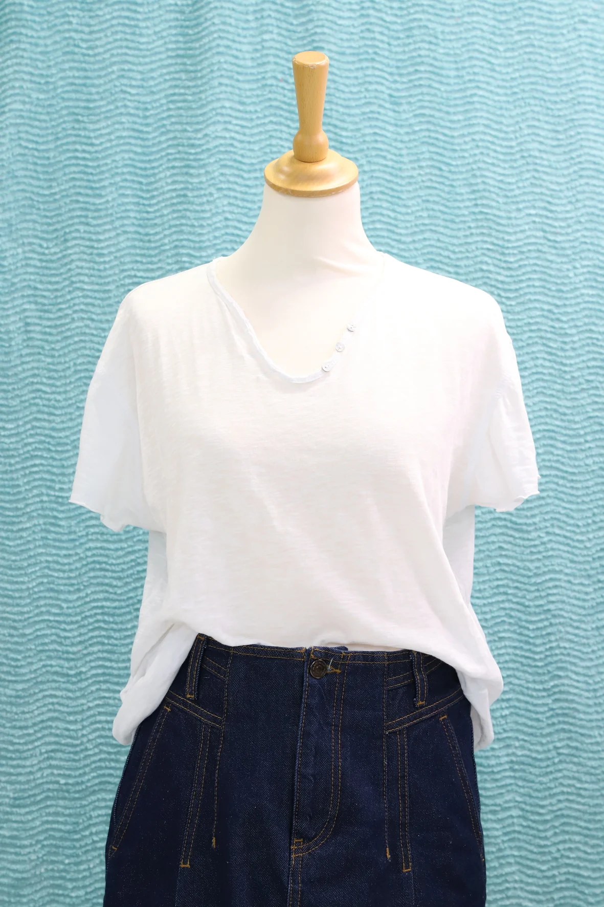 DESCRIPTIF T-shirt blanc, petit col avec boutons, légèrement transparent