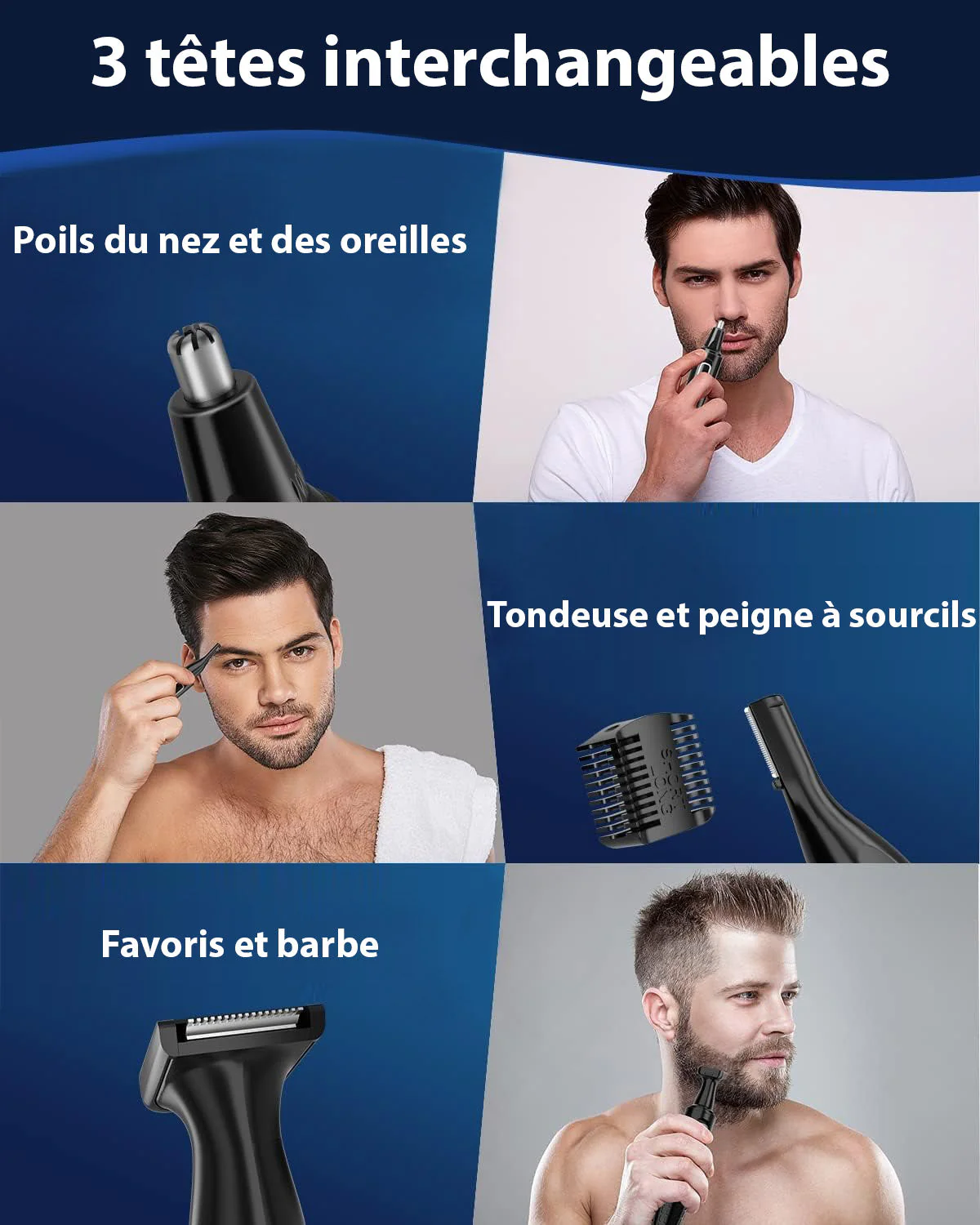 Cette tondeuse dispose de 3 têtes interchangeables, vous permettant de tailler aisément les poils du nez, des oreilles, des sourcils et de la barbe. Une solution complète pour afficher une apparence soignée.