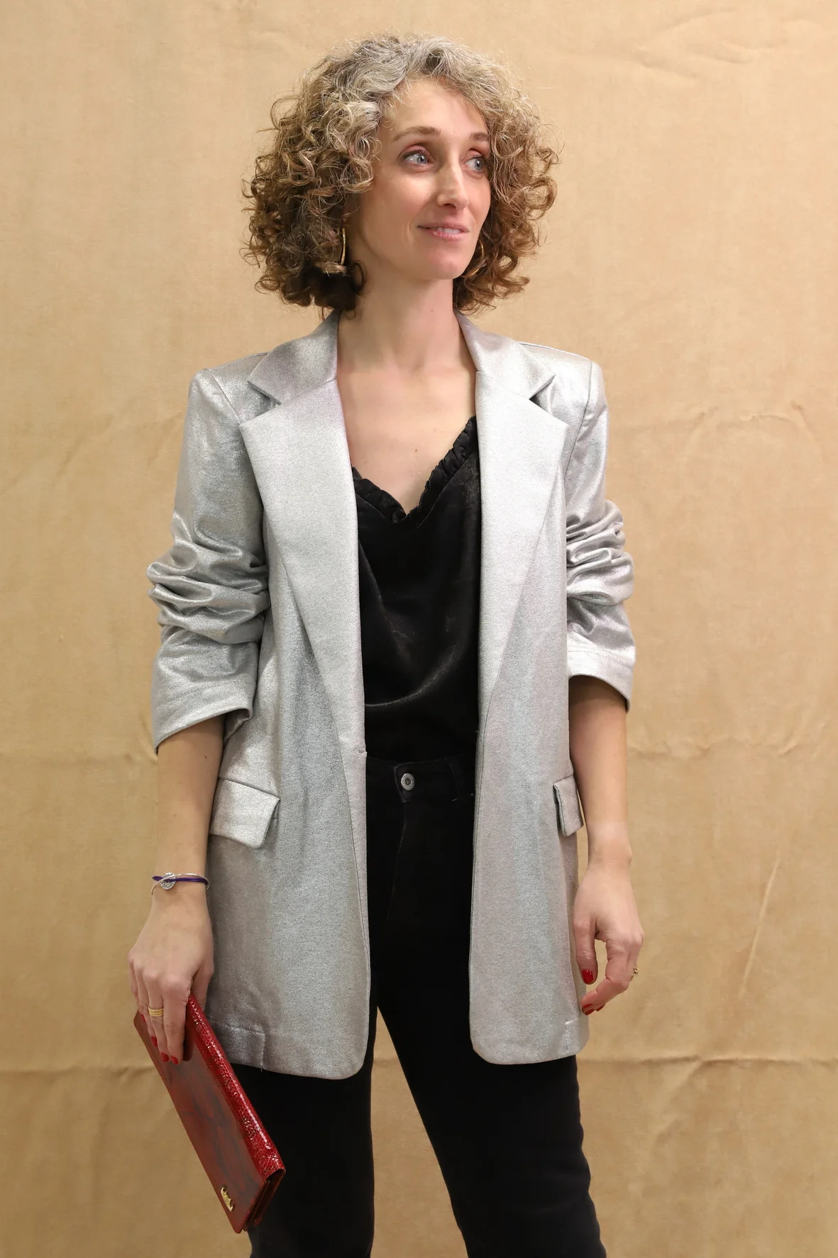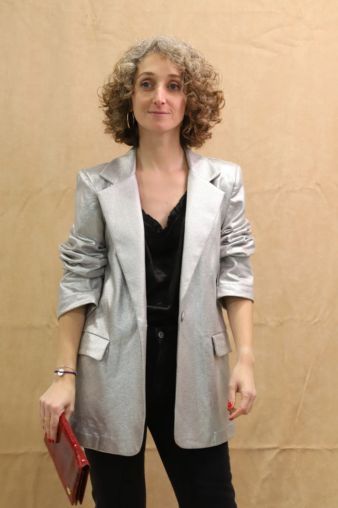 DESCRIPTIF Veste tailleur argentée, non doublée