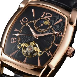 Montre Rectangulaire Homme Vintage – Squelette Art Déco