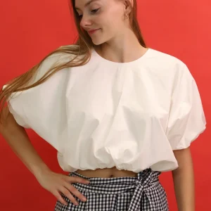 Blouse blanche à manches courtes Zara Taille S