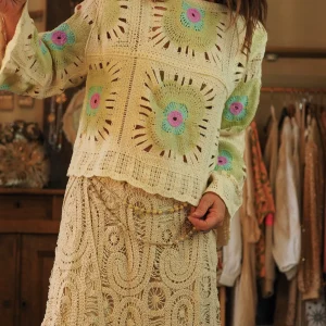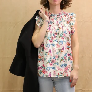 Blouse sans manche à smocks motif fleurs Atelier Evène Taille M