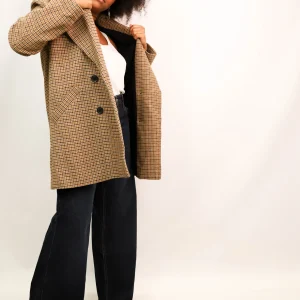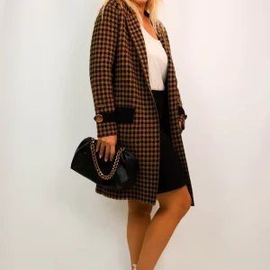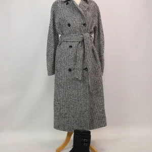 Manteau long à carreaux noir et blanc, Caroll, XL