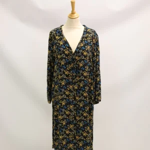 Robe longue bleue marine fleurie, longue fermeture SEZANNE Taille L