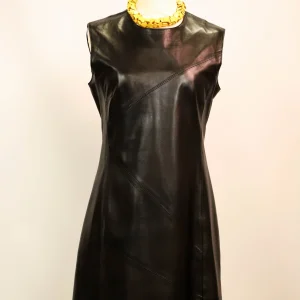Robe noire en cuir, sans manches, Votre Nom, Taille L/40