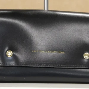 Sac pochette en bâche de vitrine upcyclée marron, Fringuette La Ligne