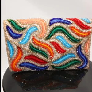 Sac pochette en bâche de vitrine upcyclée multicolore, Fringuette La Ligne