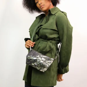 Sac pochette en bâche de vitrine upcyclée verte, Fringuette La Ligne