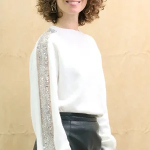 Pull bllanc manches brodées « Version Féminin » Taille Unique (M/L) – NEUF