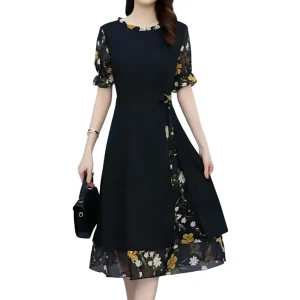 Robe Longue Noire Fleurie