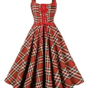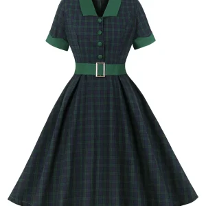 Robe Vintage Boutonnée à Carreaux – Élégance Rétro