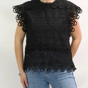 Chemisier dentelle sans manches noir Taille S
