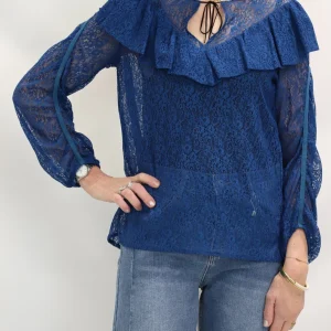 Chemisier dentelles, bleu Maje Taille S – NEUF
