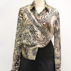 Chemisier en soie imprimé léopard beige Fred Lansac Neuilly Taille XL