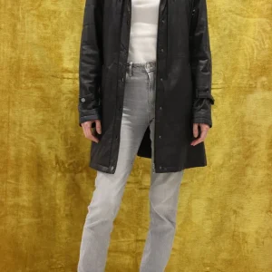 Manteau en cuir véritable à capuche Noir Pause Café Taille XL