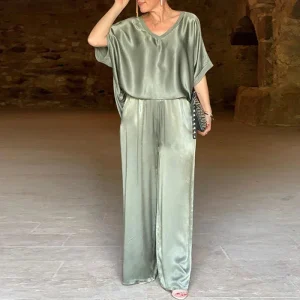 Isabella | Ensemble Soyeux avec Haut en V et Pantalon Large