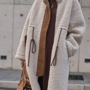 LuxeStyle – Manteau en laine abricot à col montant pour l’hiver